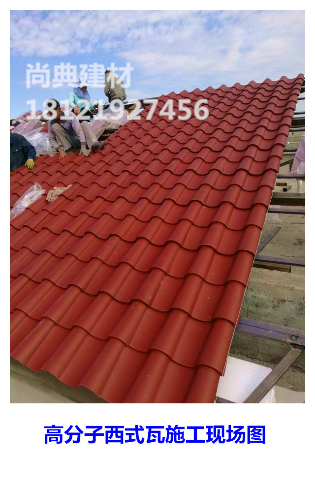 高分子西式瓦是采用專用于室外耐候性十分優(yōu)秀的高分子特種工業(yè)樹脂經(jīng)高溫高壓模壓而成。產(chǎn)品輕質(zhì)高強(qiáng)、色彩豐富、光潔亮麗,造型既具有古樸典雅的復(fù)古風(fēng)格,又具有高端大氣的現(xiàn)代氣息,是古典的厚重與現(xiàn)代材質(zhì)工藝的完美結(jié)合。高分子西式瓦與傳統(tǒng)的燒結(jié)瓦相比,具有單張面積大、安裝簡便快捷、安裝工資低、節(jié)約原輔材料等優(yōu)勢(shì)。產(chǎn)品集防水、隔熱、裝飾于一體,是現(xiàn)代建筑理想的用瓦選擇。廣泛用于別墅建筑、風(fēng)景區(qū)、公園樓亭、高檔建筑等建筑屋面。