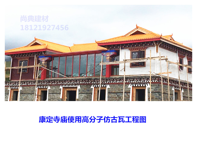 高分子琉璃瓦輕質(zhì)高強(qiáng),單張面積大安裝簡(jiǎn)便快捷,不用作基層材料,不用作防水材料,不用水泥沙漿粘貼,防水效果好,終身不需要維修,表面光潔亮麗、不失光、不褪色可以保持長(zhǎng)久如新。