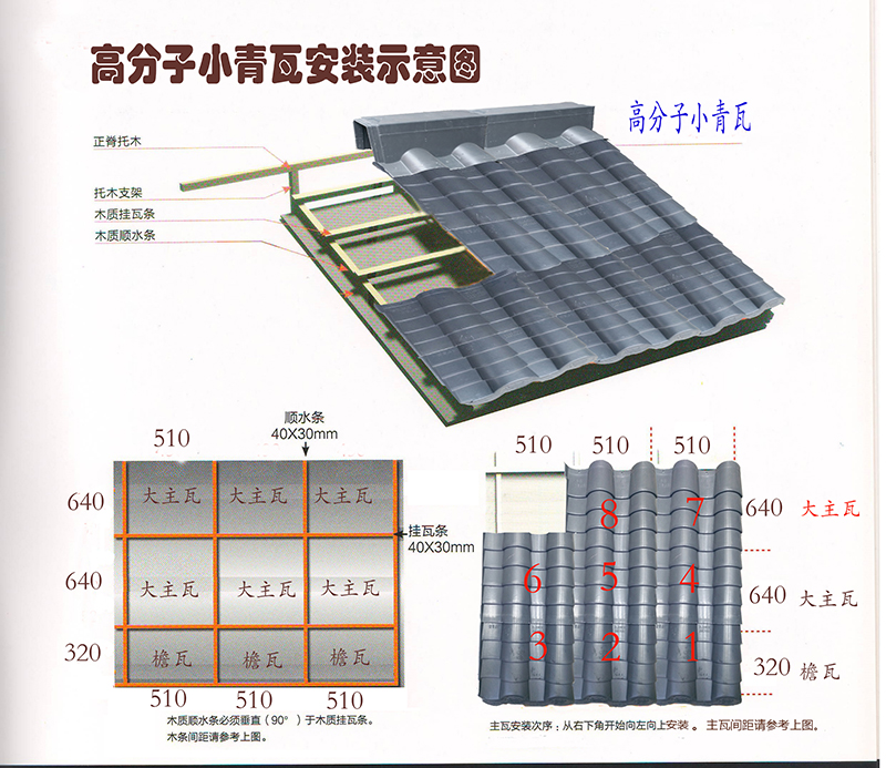 掛瓦條的尺寸:40mm*30mm,用45mm長的鍍鋅鋼釘釘在順?biāo)畻l上。