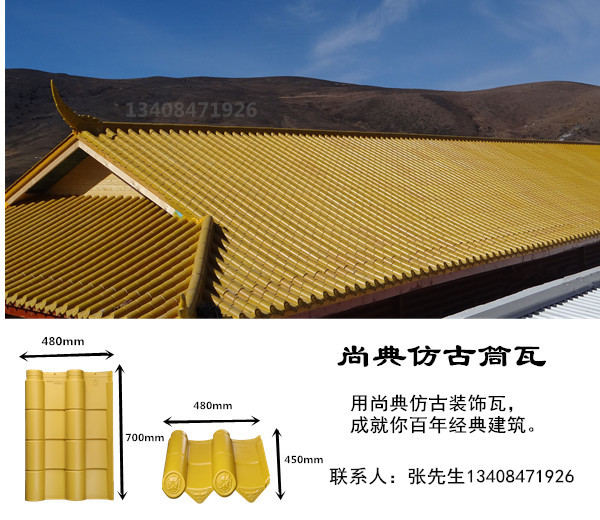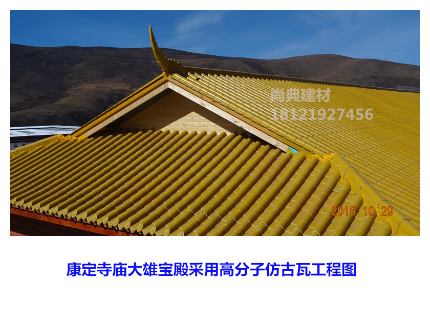 復(fù)合聚酯仿古瓦是古筒瓦的一種創(chuàng)新產(chǎn)品,目的是要解決古筒瓦的一些缺陷,比如單張面積小,安裝施工繁雜,施工進(jìn)展慢,運(yùn)輸損耗大,使用后期維修成本高,表面粗糙,色彩單一等缺陷,因此復(fù)合聚酯仿古瓦市場定位,除用在傳統(tǒng)仿古建筑物外,還可以用在鋼結(jié)構(gòu)、木結(jié)構(gòu)、樓頂花園等欲打造屋面外觀形象的建筑物屋面上。