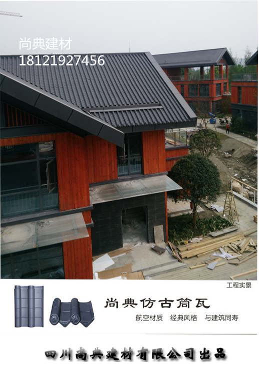 產(chǎn)品概況:復(fù)合聚酯仿古瓦是我公司與多家科研機(jī)構(gòu)合作經(jīng)過多年的開發(fā)的一種獲得多項國家專利的新型免燒高端屋瓦產(chǎn)品,與傳統(tǒng)燒結(jié)筒瓦或小青瓦相比具有強度高質(zhì)重輕、安裝簡便快捷、色彩豐富古樸典雅、質(zhì)感細(xì)膩厚重、永不裂紋、不褪色、不滲漏、終身無需維修、綜合性價比更高等多種獨特的品質(zhì)優(yōu)勢,是燒結(jié)筒瓦或小青瓦的更新?lián)Q代產(chǎn)品,是各類高端中式風(fēng)格建筑最理想的裝飾屋面瓦。