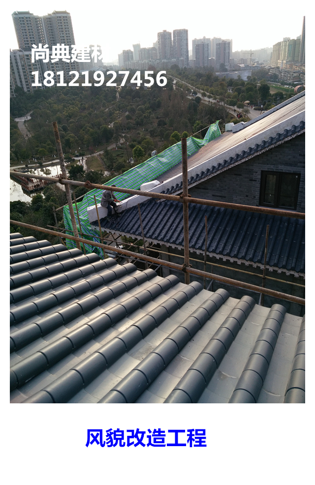 既具有古筒的基本造型,又是有超越古筒瓦的優(yōu)勢,即線條更加清晰,立體感更強(qiáng),由于高分子仿古瓦表面光亮、色彩多樣,所以產(chǎn)品既具有古樸風(fēng)格,又具有典雅大氣的現(xiàn)代氣息,使建筑物更加恢宏大氣,因表面光滑亮麗,不易積淀污漬,使其可以長久保持潔凈如新,所以與古筒瓦相比,更具有長久如新的裝飾效果。